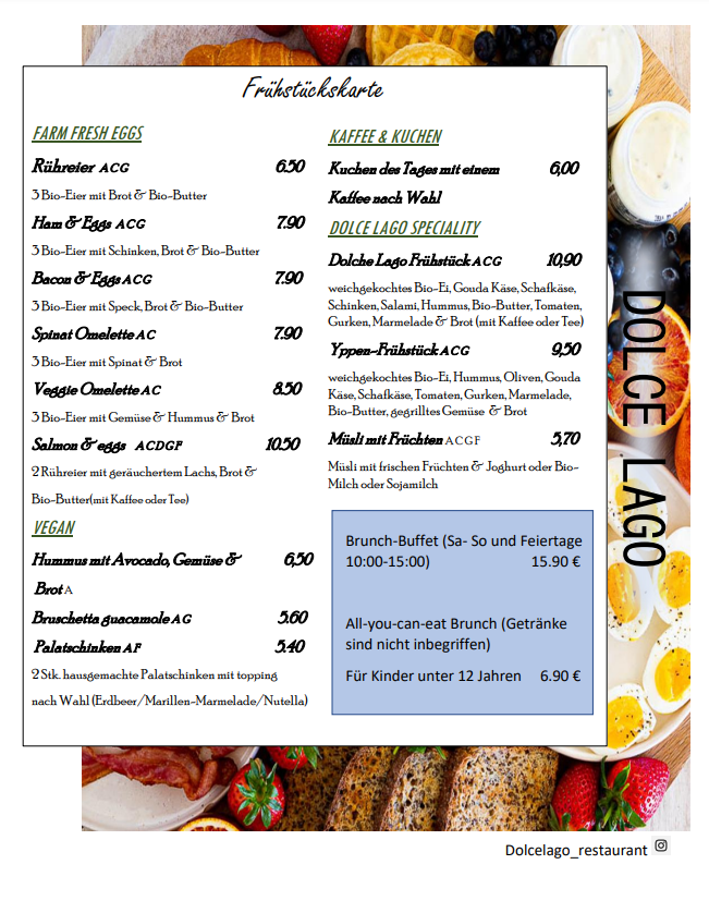 Das Dolce Lago im Yppenmarkt bietet samstags und sonntags immer von 10 bis 15 Uhr ein All-you-can-eat Brunch-Buffet für nur 16.00€ an.
