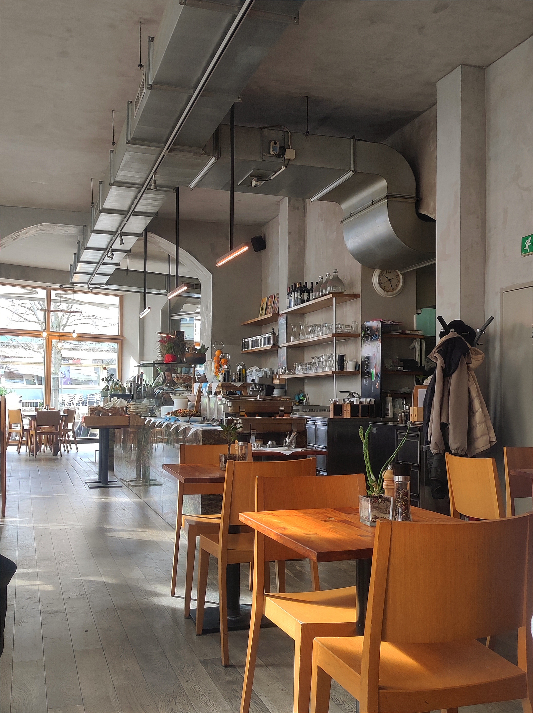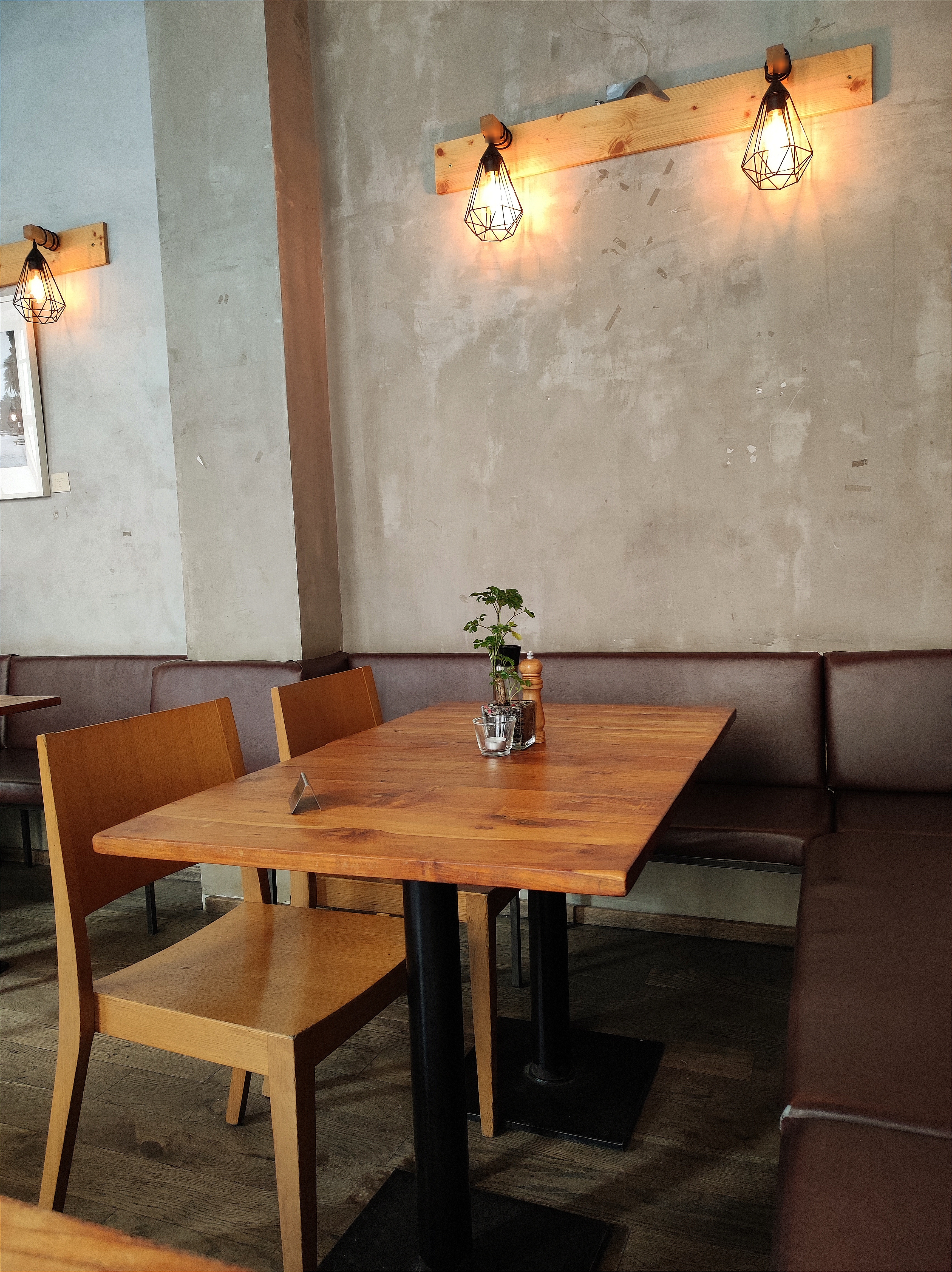 Erst einmal zum Lokal. Es ist im Industrial-Stil eingerichtet und wirkt dank der großen Fenster sehr freundlich und einladend.
