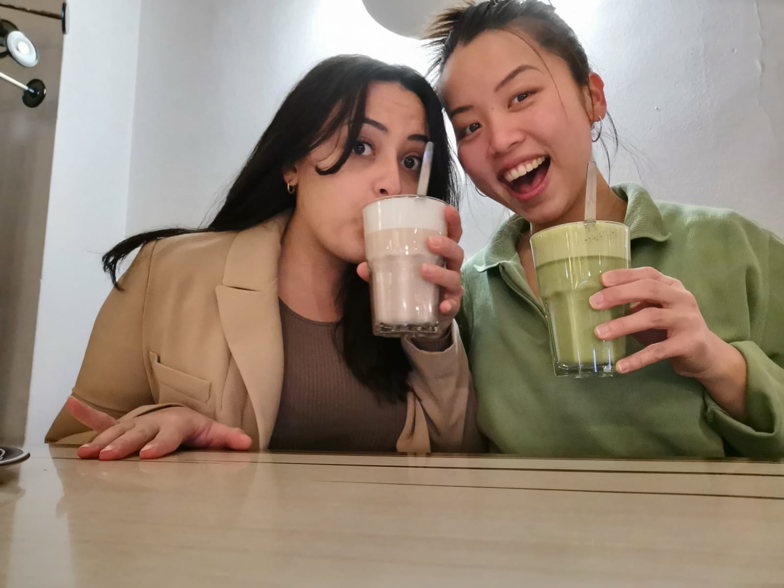 Das Mango Lassi ist hier besonders gut! Aber heute wurde es für mich der Chai Latte und für Karin der Matcha Latte. Von den Farben her passend zu unserem Outfit :D