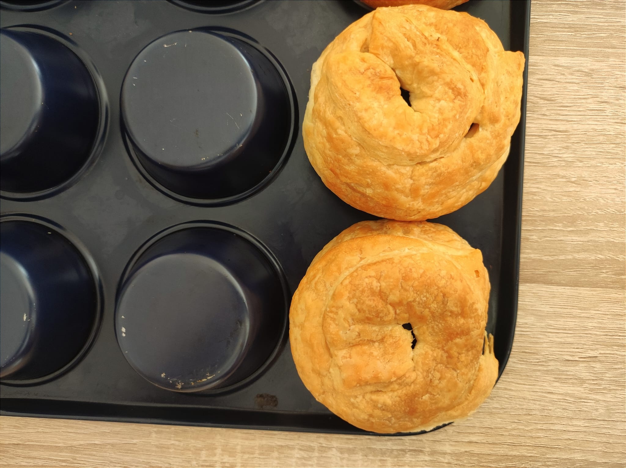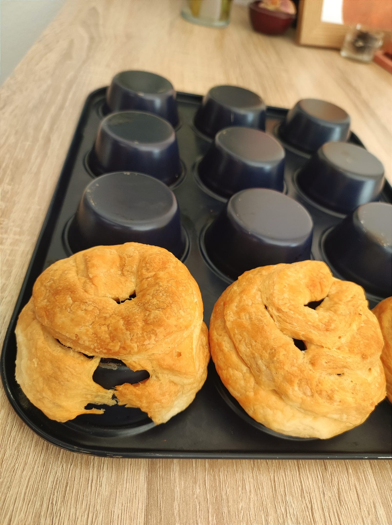 Die Muffinform nun mit den Teigstreifen umhüllen (bitte ein wenig präziser als ich, so sahen sie nach dem Backen aus :D)